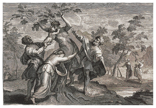 Nada mais restava de Dríope, a não ser o rosto. As lágrimas continuavam a escorrer-lhe dos olhos, caindo sobre as folhas, e, enquanto podia, ela falou:
